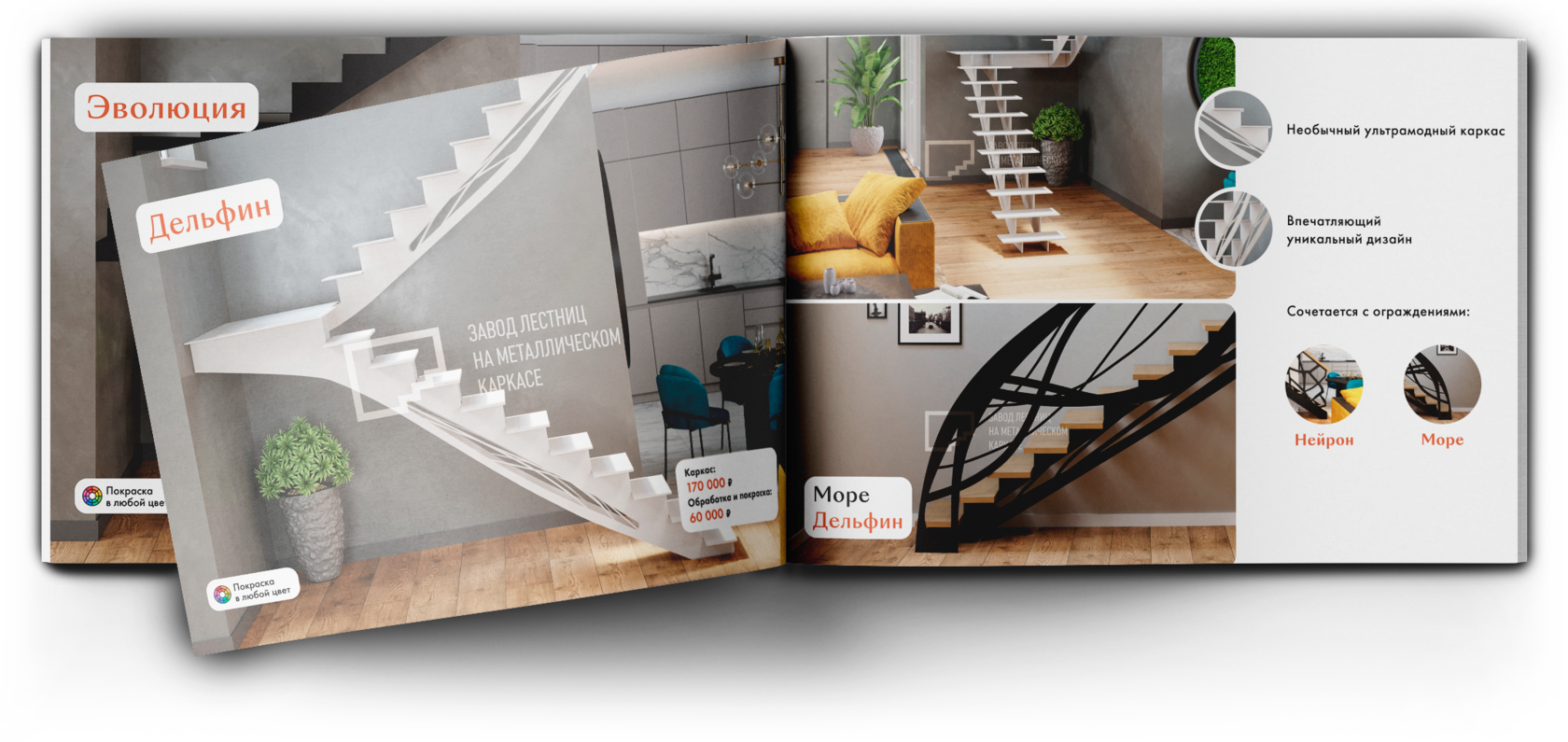 Мы изучили мировой опыт в лестницах и разработали за 9 месяцев каталог с 56 моделями дизайнов лестниц и вышли на новый уровень! После этого мы делаем такие лестницы для всех наших клиентов.